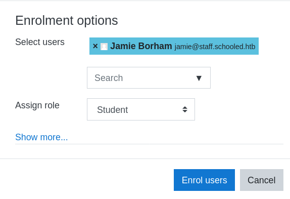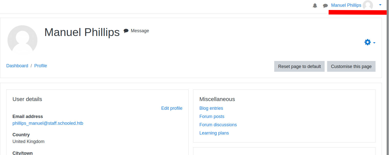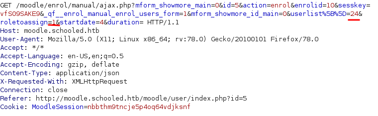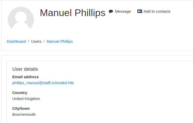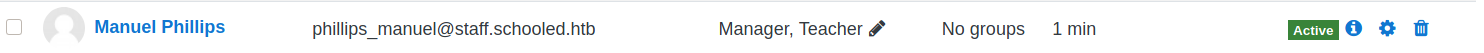 Now that we have the teachers’ domain, we can try to register to Moodle using a @staff.schooled.htb account. We may be able to get teacher role.