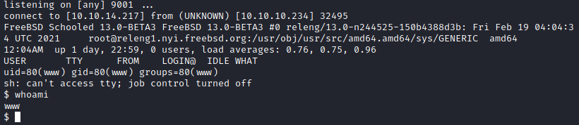 connect to [10.10.14.217] from (UNKNOWN) [10.10.10.234] 15762