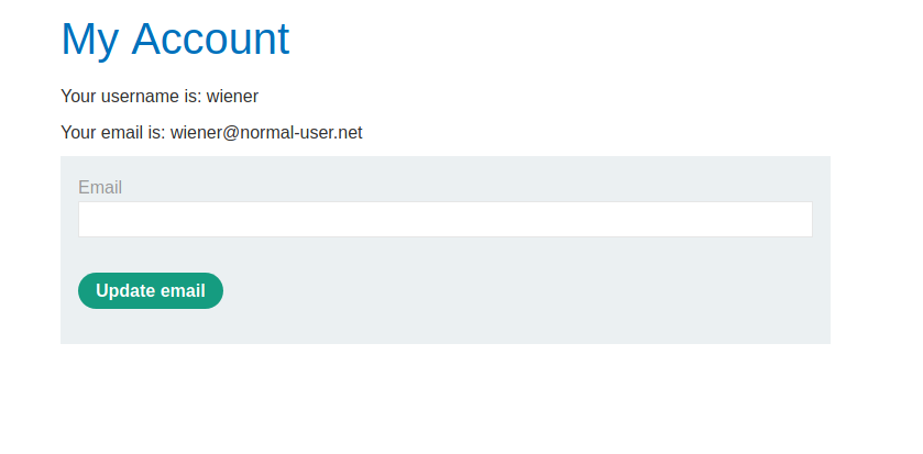 We log in as the wiener user and we are redirected to our account page (/my-account):